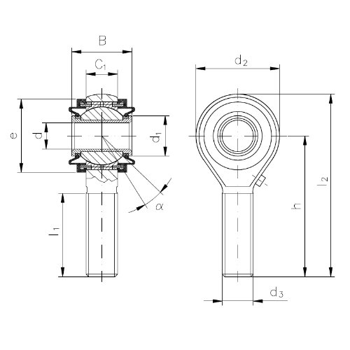 | d1 | d2 | e | h | l1 | l2= | Yük katsayılarıC0 statik | Eğim açısı | Ağırlık |