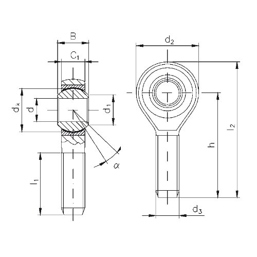 | d2 | dk | h | l1 | l2 | C0 Statik yük katsayısı Standart -V -L |